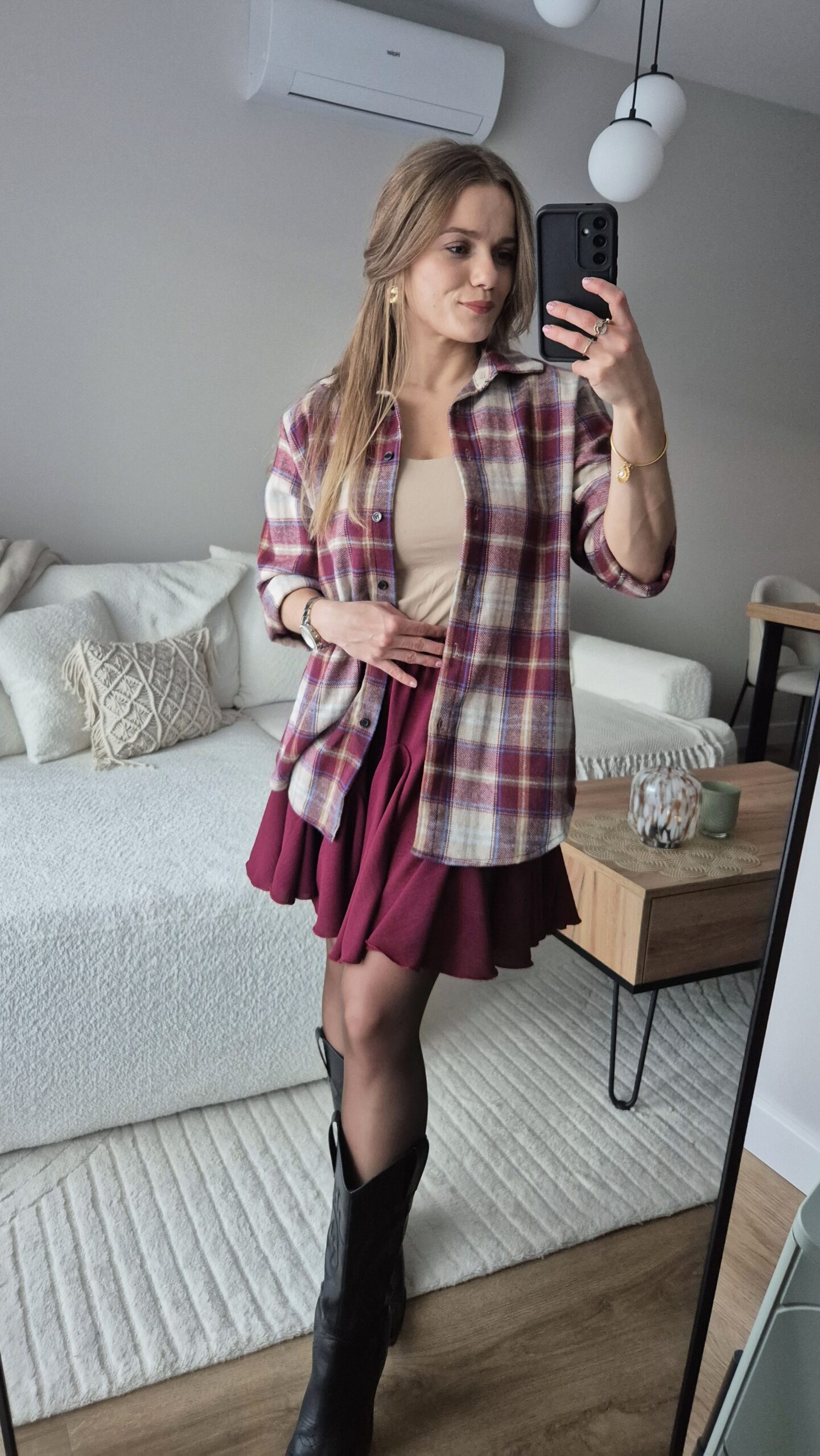 Postaw na kratę! Koszula ALLIE w bordową kratę to must have w tym sezonie. Bawełniana koszula w rozmiarze uniwersalnym świetnie się sprawdzi zapięta, ale też narzucona na outfit. Ten uniwersalny model możesz połączyć ze spódniczką, spodenkami, dżinsami i ze wszystkim będzie wyglądać świetnie.